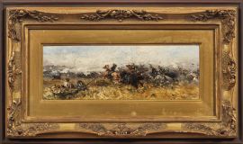 Quando Sebastiano De Albertis decise di abbandonare l’Accademia di Belle Arti di Brera per imbracciare le armi aveva appena vent’anni. L’esordio fu nelle barricate durante le Cinque Giornate di Milano, di cui impresse il vivace ricordo in una tavoletta presentata in questa vendita (lotto 3). L’attività svolta in prima linea sul campo di battaglia gli valse la consacrazione a “pittore battaglista”.