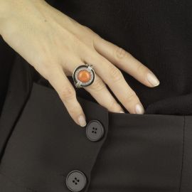 ANELLO A DISCO CON CORALLO DIAMANTI