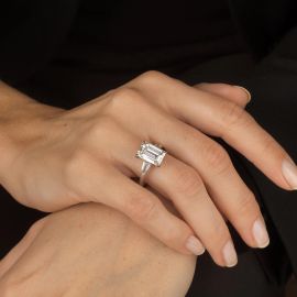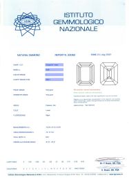in oro bianco 18kt, al centro un diamante taglio ottagonale di ct 4.96 (smontato), colore I, purezza Vvs1, affiancato da coppie di diamanti taglio tapes per ct 0.50 circa, punzone 750, mis. 65, gr. 3. Corredato di certificato IGN del 1/07/2021 attestante le caratteristiche della pietra centrale.