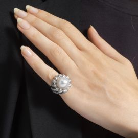 PEARL AND DIAMOND RING IN 18KT WHITE GOLD
