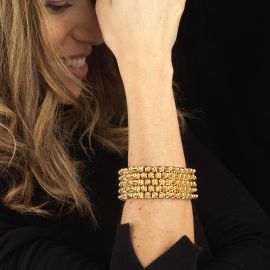 in oro giallo 18kt, composto da serie di piccole maglie appuntite, punzoni 750 e del fascio, lungh. cm 19,5, gr. 118