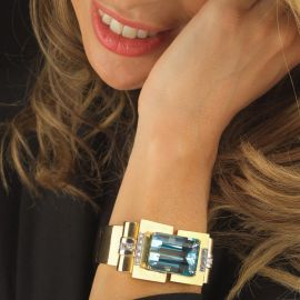 BRACCIALE RIGIDO CON GRANDE ACQUAMARINA E DIAMANTI