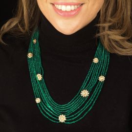 COLLANA MULTIFILO CON SMERALDI E DIAMANTI
