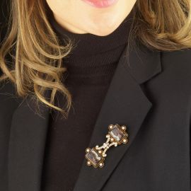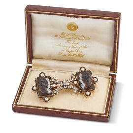 GRANDE SPILLA CON CAMMEI DIAMANTI E PERLE