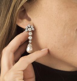 PAIO DI ORECCHINI PENDENTI CON PERLE E DIAMANTI