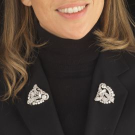DOUBLE CLIP DIAMOND BROOCH IN 18KT WHITE GOLD