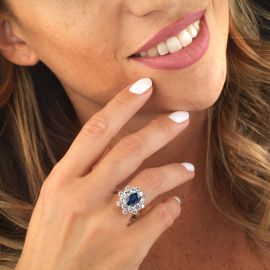 ANELLO A FIORE CON ZAFFIRO E DIAMANTI