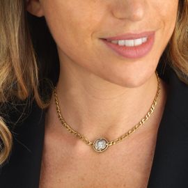 18KT YELLOW GOLD CHAIN NECKLACE WITH A COIN