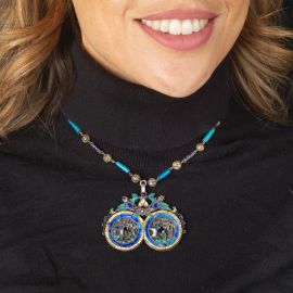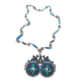 ORIENTAL STYLE NECKLACE WITH A BIG PENDANT IN ENAMELLED METAL