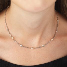 GIROCOLLO A CATENA CON PERLE E DIAMANTI