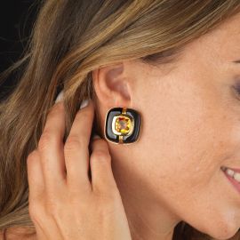 ONYX AND CITRINE QUARTZ EARRINGS IN 18KT YELLOW GOLD