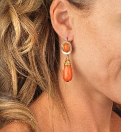 PAIO DI ORECCHINI PENDENTI CON CORALLO