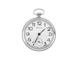 Un secondo orologio Molnia, cassa cromata, quadrante di colore avorio con numeri arabi, secondi a ore 6, movimento a carica manuale (non funzionante), vetro minerale. Diam mm 43