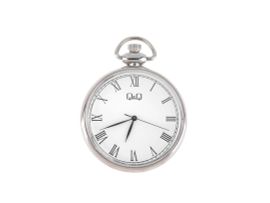 di cui un orologio Q&Q con cassa cromata, quadrante bianco con numeri romani, movimento a carica manuale, vetro plastica. Diam mm 38