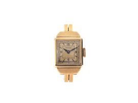 Un secondo orologio Astral Lady ref. 183 n. 8186, cassa in oro giallo 18kt, quadrante di colore oro, numeri arabi e indici di colore nero, movimento a carica manuale n. 22104, vetro plastica. Dim mm 14x21, gr complessivi 7 circa