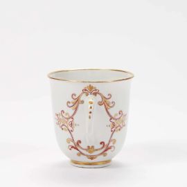 in porcellana, forma a campana con ansa ad anello. Decoro “alla Sassone” in policromia e oro; tazzina alt. cm 6,8