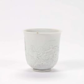 in porcellana, forma a campana. Decoro acromo a bassorilievo istoriato; alt. cm 7,2