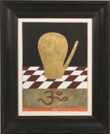 collage,acquerello, sabbia, oro in foglia, acrilici su cartone