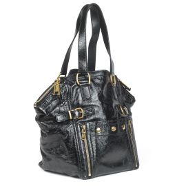 YVES SAINT LAURENT DOMESHAPE TOTE DOWNTOWN IN BLACK AGED PATENT LEATHER
