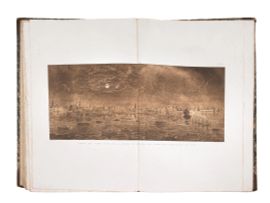 In folio (550 x385 mm) in due parti. Prima parte: xi [1] 214 [2] pp., ultima carta bianca (pallida gora marginale al frontespizio e alle carte successive, carte occasionalmente arrossate o brunite). Seconda parte con titolo proprio Tavole spettanti al viaggio nel Basso ed Alto Egitto illustrato dietro alle tracce e ai disegni del sig. Denon e composta da: [6] tavole denominate A-G seguite da 144 tavole incise (assenti le seguenti 7 tavole: 51, 89, 90, 114, 126, 128 e 130, pallide fioriture occasionali). Mezza pelle coeva, dorso con titolo e decorazione dorate (piccola fenditura alla testa della cerniera anteriore, abrasioni e sbucciature).