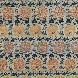 pannello “kesi” ricamato con fiori e rami, sui bordi draghi rossi che giocano con le gemme e motivo geometrico; cm 195,5x72