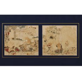 su carta che rappresentano i Lohan intenti a spiegare i testi del buddismo, reca firma Ding Yun Peng; cm 34,5x40