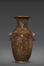 清 十八世纪 铜洒金铺兽衔环大瓶
