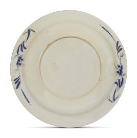 in porcellana dipinta in monocromia azzurra, coerente con l’esemplare che precede mostra al centro del cavetto una figura femminile adagiata su dei massi rocciosi nell’atto di sollevare una piccola ghirlanda di fiori: si tratta della figura di “Flora”. Insieme all’opera che segue (lotto 145) il piatto appartiene alla nota serie con decoro “a riporto”, una tecnica che anticipa la stampa a trasferimento termico che prenderà piede in seguito in Inghilterra, menzionato negli inventari come decoro “a stampa”, frutto di un'elaborata sequenza per trasferire sul biscotto un'incisione preventivamente fatta su rame e poi rifinita a mano libera, come si desume dal carteggio tra il Marchese Ginori e Jacopo Fanciullacci attorno al 1751. Il piatto è stato recentemente pubblicato da Alessandro Biancalana nel suo testo monografico su Doccia; diam. cm 22,5, alt. cm 3,1