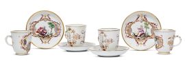 QUATTRO TAZZINE CON PIATTINO, DOCCIA, MANIFATTURA GINORI A DOCCIA, 1760 CIRCA