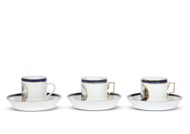 TRE TAZZINE CON PIATTINO, DOCCIA, MANIFATTURA GINORI, 1810-1820