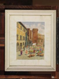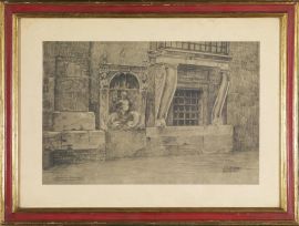 riproducente disegno raffigurante Palazzo Sacchetti e firmato e datato "L. Cartocci / VIII - 38 - XVI", cm 30x42