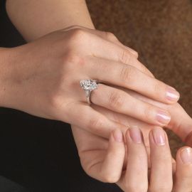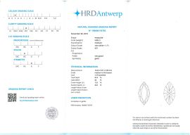 in oro bianco 18kt, al centro un diamante taglio navette (smontato) di ct 4.80, colore F, purezza Vs1, affiancato da due diamanti taglio tapes per ct 0.20 circa, mis. 49, gr. 6. Corredato di certificato HRD Anversa del 06/11/2019 attestante le caratteristiche.
