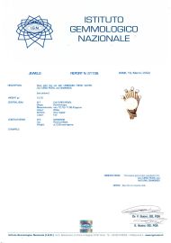 in oro rosa e bianco 18kt, realizzato a forma di tralcio con lavorazione a cordicella e diamanti taglio brillante per ct 0.50 circa, recante sulla sommità una perla coltivata semibarocca di mm 12.70/11.96 circa, mis. 49, gr. 13. Corredato di certificato IGN del 16/03/2022 attestante le caratteristiche.