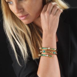 BRACCIALE SEMIRIGIDO A SPIRALE CON PERLE NATURALI E SMERALDI COLOMBIANI