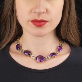 AMETHYST AND DIAMOND NECKLACE IN 18KT TWO TONE GOLD