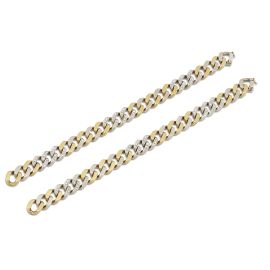 in oro giallo e bianco 18kt, con alcune maglie impreziosite da diamanti taglio huit huit per ct 1 circa, scomponibile in due bracciali, lungh. cm 37, gr. 89