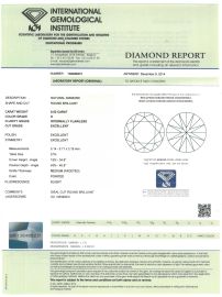 taglio brillante, di ct 0.52, colore D, purezza I.F. Corredato di certificato IGI Anversa del 8/12/2014 attestante le caratteristiche.