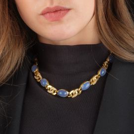 CHALCEDONY AND DIAMOND CURB NECKLACE IN 18KT YELLOW GOLD
