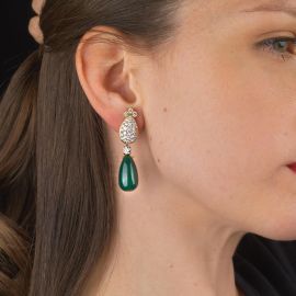 MORONI EMERALD AND DIAMOND DROP EARRINGS IN 18KT YELLOW GOLD