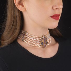 PERCOSSI PAPI PEARL AND AMETHYST NECKLACE IN 9KT GOLD