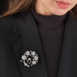 FLOWERING BRANCH-SHAPED DIAMOND BROOCH IN 18KT WHITE GOLD