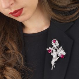 SPILLA A TRALCIO FIORITO CON RUBINI E DIAMANTI