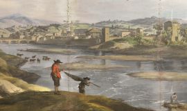 Proveniente proprio dalla collezione Gerini e oggi presso la collezione della Cassa di Risparmio di Firenze (Barbolani di Montauto 1996, pp.68-70, cat. 12) è una tela di più contenute dimensioni con lo stesso originale punto di vista della nostra tela, dal viale delle Cascine folto di pini e querce, con la suggestiva apertura sull’Oltrarno da Porta san Frediano che passando per il campanile di Santo Spirito e Palazzo Pitti arriva sino al forte Belvedere sulle colline azzurrate. Come giustamente è stato notato, la mancanza della chiesa di San Frediano in Cestello, confermerebbe la datazione alla quale far risalire la veduta, intorno al 1680, anno in cui ebbero inizio i lavori per la riedificazione di tale edificio religioso.