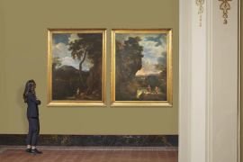 coppia di dipinti ad olio su tela, cm 173x128,5