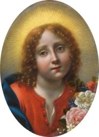 JESUS WITH A BUNCH OF FLOWERS AND SAINT JOHN THE BAPTIST