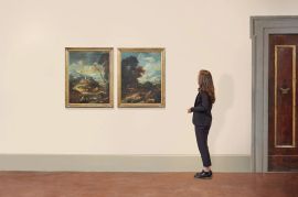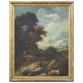coppia di dipinti ad olio su tela, cm 82,5x63,5