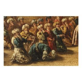 Sebbene non documentate in maniera specifica, le tele qui offerte devono includersi nei “Quaranta tre quadri rappresentati costumi de’ Turchi” che l’inventario del Maresciallo Matthias von Schulenburgh censisce nel 1746 come opera di Guardi nel palazzo Loredan a San Trovaso, residenza veneziana del Maresciallo, e più precisamente “nella stanza del Ten.e Col. Arcoleo”, secondo i documenti d’archivio trascritti e analizzati da Alice Binion nella sua ricostruzione di questa importante collezione veneziana.