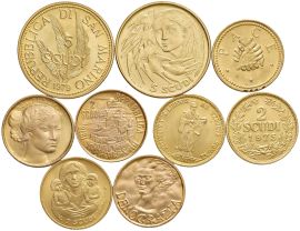 SAN MARINO. DUE MONETE DA 5 SCUDI E SETTE MONETE DA 2 SCUDI