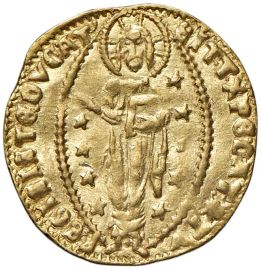 Au gr. 3,52 D/ San Marco porge il vessillo al Doge genuflesso R/ Il Redentore entro un’aureola ellittica stellata Mont. 221 Paol. 1 Fr. 1238