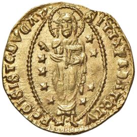 Au gr. 3,53 D/ San Marco porge il vessillo al Doge genuflesso R/ Il Redentore entro un’aureola ellittica stellata Mont. 184 Paol. 1 Fr. 1234